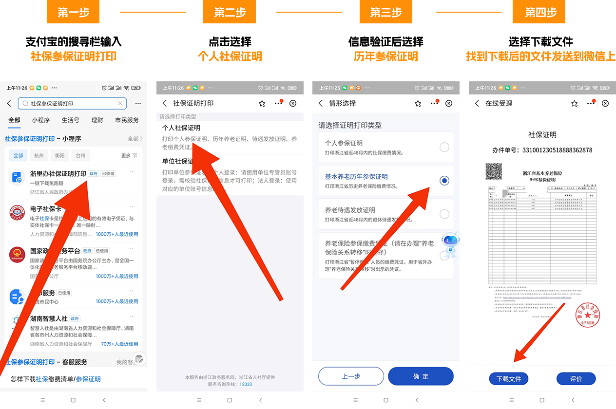社保证明查询流程:打开支付宝→社保证明打印→个人社保证明→进入办事→信息验证→基本养老历年参保证明或到 www.12333.gov.cn 注册查询