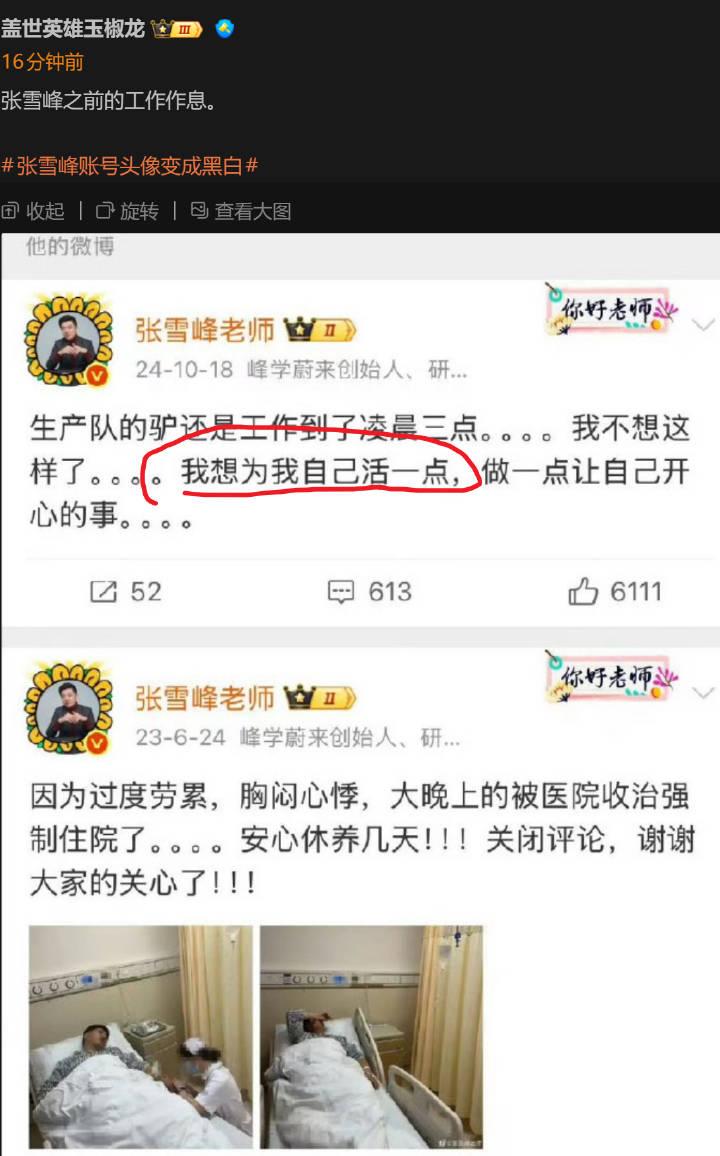 最新进展 · 张雪峰心源性猝死抢救无效去世